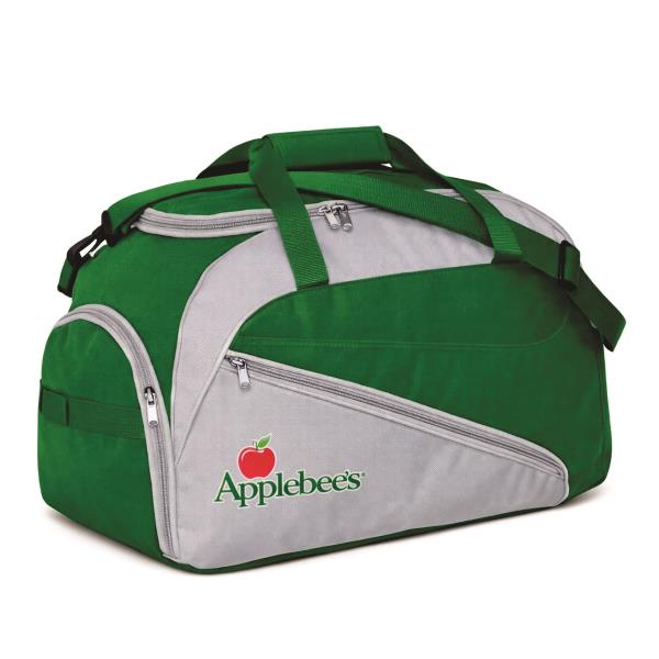 Bolsa Esportiva em Poliéster com bolsos laterais e frontal, alça de mão e alça de ombro regulável e removível. Disponível em várias cores. Gravação da logomarca em 1 cor já inclusa.